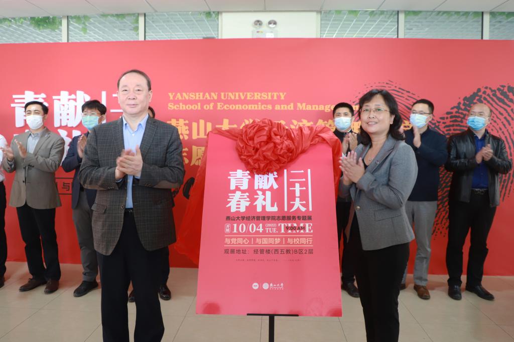 志愿服务专题展揭幕仪式在经管楼B区2层举行。校党委副书记谢延安、党委宣传部部长孙红磊、党委学工部部长薛传佳、校团委副书记王海涛,91麻豆